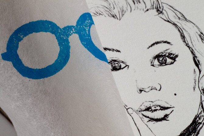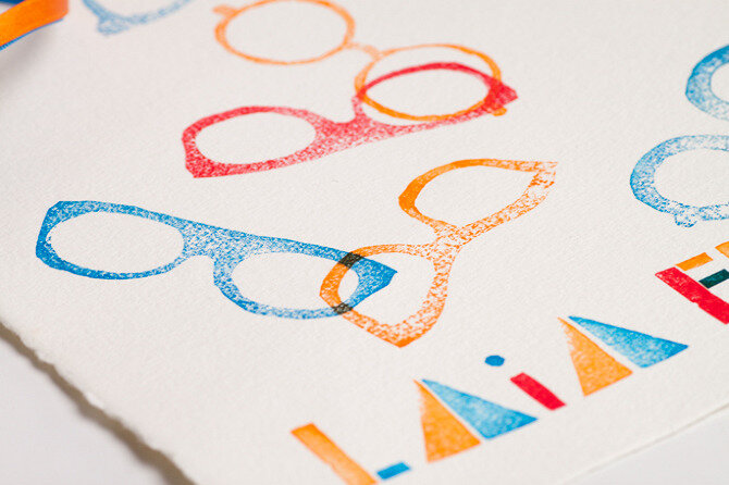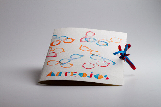 Artist book about famous eyeglasses. Litography and linocut stamps